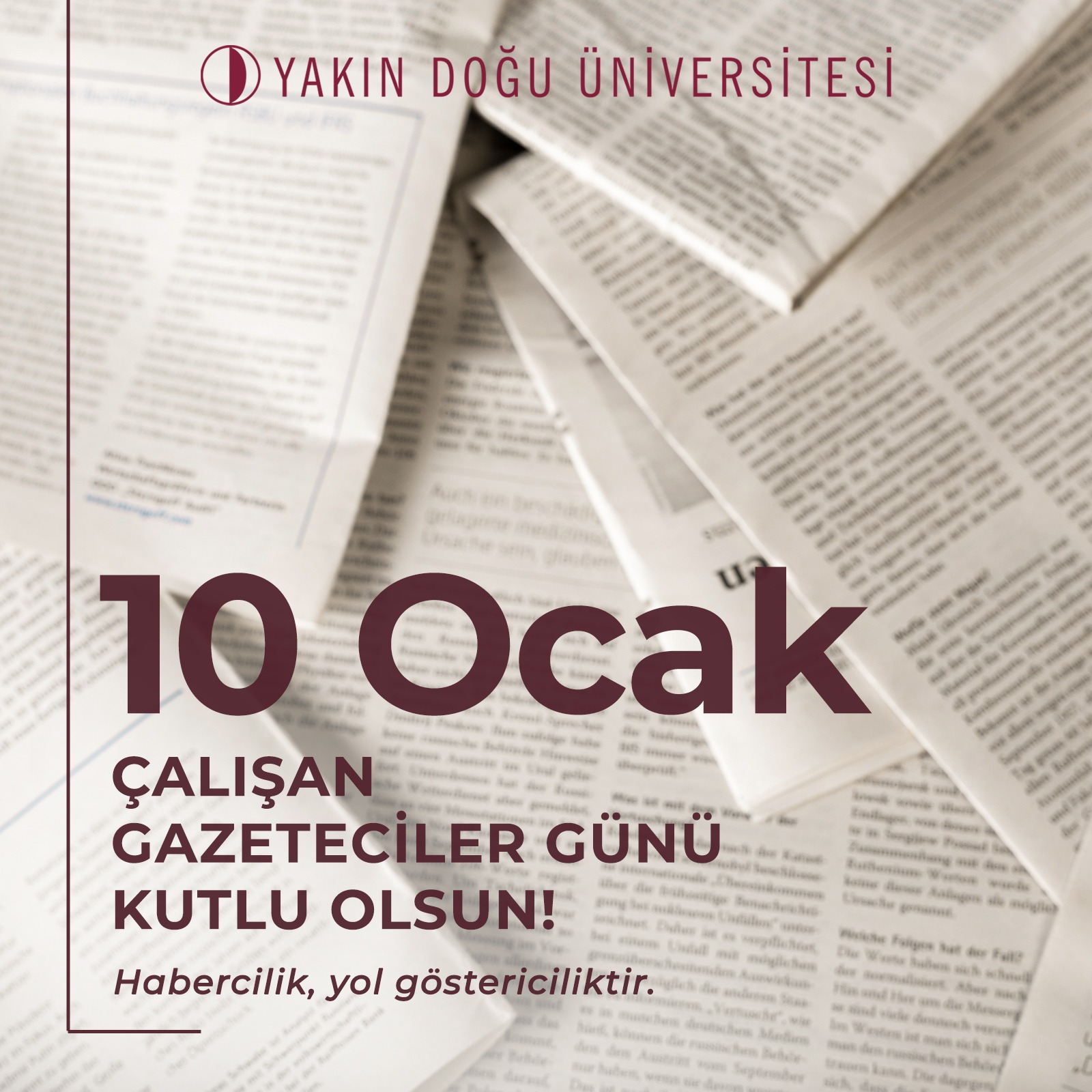 Eklenme Tarihi: 10 Ocak 2023, 11:49 Paylaş: Toplumun doğru bilgilenmesi ve aydınlanması amacıyla büyük bir emek ve özveriyle çalışan siz değerli gazetecilerin, “10 Ocak Çalışan Gazeteciler Günü”nü gönülden tebrik ediyoruz!