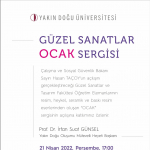 Kıbrıs Modern Sanat Müzesi için Yakın Doğu Üniversitesi Güzel Sanatlar ve Tasarım Fakültesi Öğretim Elemanları tarafından hazırlanan “Ocak” adlı karma sergi, Çalışma ve Sosyal Güvenlik Bakanı Hasan Taçoy tarafından, 21 Nisan 2022 Perşembe günü saat 17.00’da Yakın Doğu Üniversitesi Atatürk Kültür ve Kongre Merkezi Sergi Salonunda açılacak.