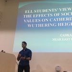 İngiliz Dili ve Edebiyatı öğrencilerinden Cankat Büyüklü ise Emily Brontë’nin Uğultulu Tepeler (Wuthering Heights) isimli romanının ana karakteri olan Catherine’in eş seçiminde etkili olan sosyal etkenleri incelediği çalışmasında, İngiliz Dili Edebiyatı öğrencilerinin konuya ilişkin görüşlerini de irdelemiş ve Brontë’nin bu karakterle sadece sosyal sınıf bağlamındaki sorunları değil, ırkçılık ve aile ilişkileri konularında da okuyucuları etkilediğini vurguladı. Büyüklü’nün sunumunun ardından, İngilizce Öğretmenliği Bölümü öğrencilerinden Zehra Betül Akkılıç ise kelime öğrenme stratejilerinin dil öğrenimi üzerindeki etkilerini öğretmen adaylarının gözünden nicel bir çalışmayla incelemiş, ve bu grubun daha çok bireysel stratejileri tercih ettiğini belirtti. Günün son sunumunda ise Hüseyin Kemik dil öğreniminde mobil cihazların kullanımını incelediği çalışmasını sunmuş ve özellikle kelime öğrenme konusunda mobil cihazların ders içerisinde kullanılması gerektiği görüşünü savundu.