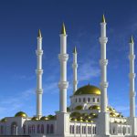 Inspired by the Ottoman architecture and designed by Near East University's architectures and engineers with Near East philosophy, Dr. Suat Günsel Mosque will the largest capacity worship center of Cyprus where 10,000 people can worship at the same time. The central dome of the mosque will be 36.80 meters high from the ground level with a diameter of 23.80 meters. The central dome will be surrounded by 61 smaller domes. 27 domes and 9 half-domes will be constructed off-center over the payer hall and the inner courtyard will be lined with 26 domes. The mosque will have six minarets in total; four minarets, each with 76.20 meter height and three minaret-balconies, and two minarets, each with 56.45 meters height and two minaret-balconies.