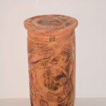 Balık avlayan bir kuşun simgelendiği seramik eser de koleksiyonun çarpıcı eserlerinden. Yalovalı’nın bu eserine ilham veren figür milattan önce 750-600 yıllarına denk gelen 1. Arkaik döneme ait bir vazodan ilham alıyor. Yalovalı’nın seramik üzerinde oluşturduğu kompozisyonda da ağzında bir balık tutan balıkçıl bir kuş figürü yer alıyor. Etrafindada o döneme ait balık motiflerinden esinleniyor.