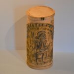 Selçuk Yalovalı, koleksiyonda yer alan bir diğer eserinde ise yine Lefkoşa’nın Agia Paraskevi bölgesinden çıkarılan bir silindir mühürden esinleniyor. Milattan önce 14. yüzyıla tarihlenen bu silindir mührün ortasında tanrı veya tanrıça olabileceği düşünülen oturur vaziyette bir figür görülüyor. Elbisesi uzun fırfırlı veya desenli bir şekilde görünen bu figür, bir eliyle de kafası kartal, gövdesi aslan olan bir “grifin”i kuyruğundan tutuyor. Etrafında kanatlı doğa üstü yaratıklar veya aslanlar tasvir edilmektedir. Yalovalı da eserinde kullandığı figürleri, yine o döneme ait olan geometrik şekiller ve motiflerle yeniden yorumluyor.