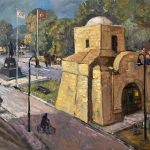 According to the press release issued by the Directorate of Press and Public Relations of Near East University, Aidos Seidakul depicted the two most significant historical and touristic locations of the Turkish Republic of Northern Cyprus “Ancient City of Salamis and Kyrenia Gate” of the walled city of Nicosia; in addition to a snapshot of the animal market, “Black Bull”, and they are now being for the art lovers.