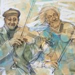 Artist Kateryna painted a happy street musician playing the accordion musical instrument, which is included in many cultures as well as in the Cypriot culture, in the monotype technique he made with colored pencils. In her other painting, the artist depicted musicians playing the violin, another constant of the Cypriot music culture, and reflected in the happiness of the instrument they play. In her third work, the Ukrainian artist portrayed children who, as their first experience, were playing the "whistle with tongue" which is one of the traditional musical instruments of Cyprus. In her last work, which is different from the other works of the artist, she painted a Turkish Cypriot woman wearing traditional Turkish Cypriot folkloric clothing. In all of her works, the artist tries to ensure that life is always viewed from a positive perspective by painting people who give happiness and peace to them. In addition, the painter depicted the motifs and colors of Cyprus in all her works.
