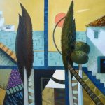 His work, which he called the Old Monastery, reflects the monastery from the Byzantine time, located near the village of Kozan, made in oil painting and Cubism technique with a geometrical form.