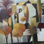 In the Artist’s artwork titled Nicosia Landscape, he magically carries the harmony of the palm, olive and jasmine trees on the streets of Nicosia to his canvases.