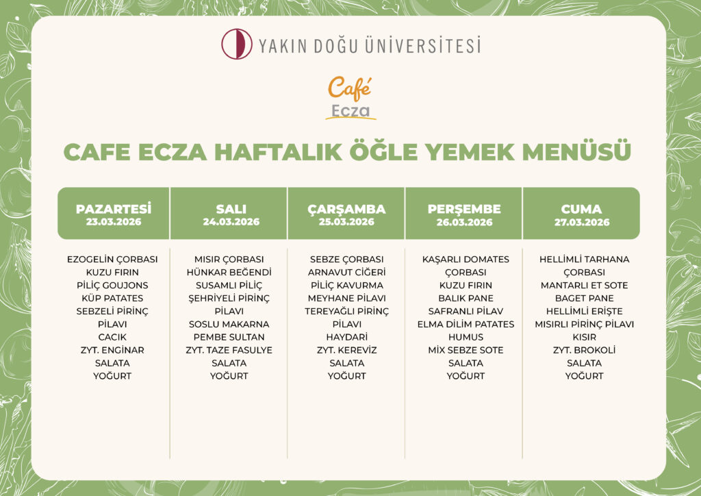 Cafe Ecza Haftalık Yemek Menüsü