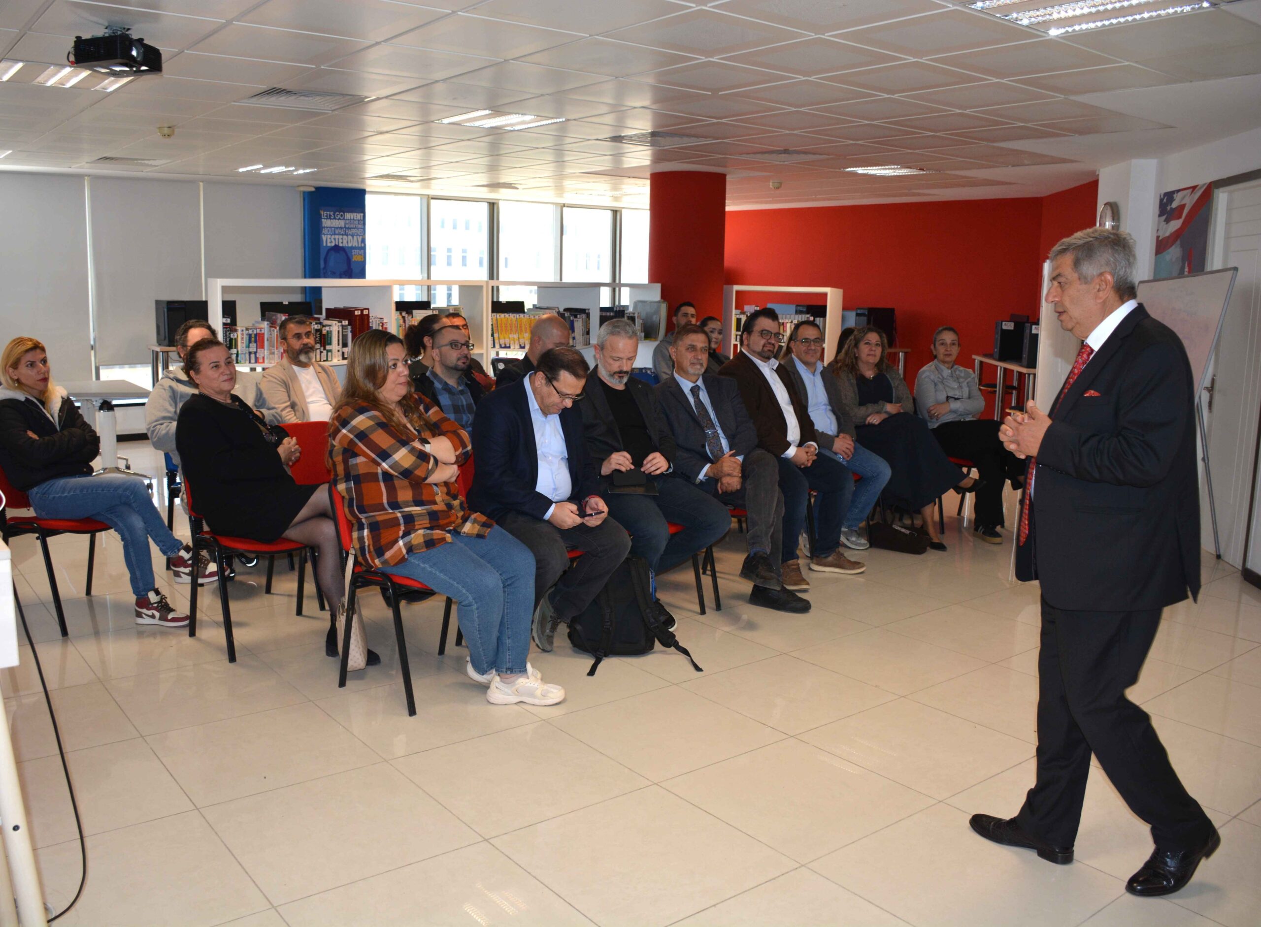 The event, held at the Near East University Grand Library, brought together academics and industry representatives such as GİTYAD (Gaziantep Free Zones Association), providing a productive knowledge-sharing environment that combined theory and practice. Moderated by Prof. Dr. Murat Özgören, the event featured Dr. Faruk Güler sharing his experience and expertise in global trade and free zones, highlighting the importance of these structures for economic development and international competitiveness. During the event, current trends in global trade were discussed in detail, addressing the impact of free zones on economic growth, the advantages they provide to the investment environment, and their role in international competition. Participants had the opportunity to listen to both theoretical and practical information.