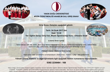 YDÜ Atatürk Eğitim Fakültesi, Güzel Sanatlar Eğitimi Bölümü Müzik Öğretmenliği Anabilim Dalı’na Özel Yetenek Sınavı ile Öğrenci Alınacaktır