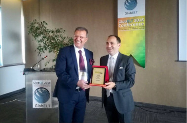 Turkey’s Ambassador to Serbia Tanju Bilgiç given a plaque at GLOBELT conference