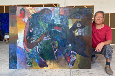 During the lockdown days imposed for controlling the COVID-19 pandemic, artist Zhyrgalbai Maturaimov created canvas paintings that he titled as “Venetian Palace”, “Two Persons” and “Street Musician” for the Cyprus Museum of Modern Arts