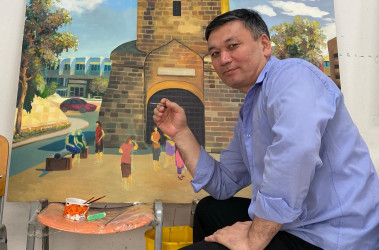 Artist Yerlan Nazarkulov painted the St. Barnabas Church, Hala Sultan Mosque and Kyrenia Gate on the quarantine days for the Cyprus Museum of Modern Arts