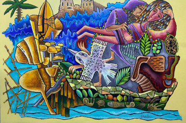 Artist Irina Lavrinenko reflected Cyprus-specific figures and motifs for the Cyprus Museum of Modern Arts through canvas paintings that she painted during the COVID-19 quarantine days