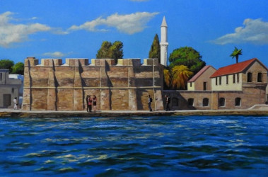 Artist Alexey Utkin painted the Harbor of Kyrenia and Nicosia Palace Courtyard, the Touristic Places of the Turkish Republic of Northern Cyprus, for the Cyprus Museum of Modern Art