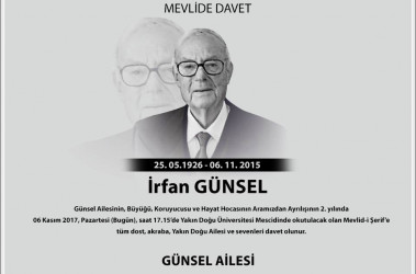 Büyüğümüz İrfan GÜNSEL’in Mevlid-i Şerif’ine Davet