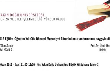 YDÜ, Turizm ve Otel İşletmeciliği Y.O. 2015-2016 Güz Dönemi Mezuniyet Töreni Davetiyesi