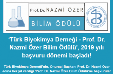 ‘Türk Biyokimya Derneği – Prof. Dr. Nazmi Özer Bilim Ödülü’, 2019 Yılı Başvuru Dönemi Başladı