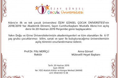 Cumhurbaşkanı Mustafa Akıncı Özay Günsel Çocuk Üniversitesinin İlk Dersini Verecek…