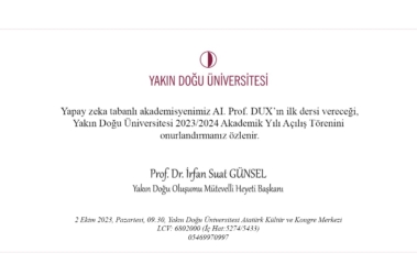 Yakın Doğu Üniversitesi’nin 2 Ekim’de Gerçekleştireceği 2023-2024 Akademik Yılı Açılış Töreninde İlk Dersi, Yapay Zeka Tabanlı Akademisyen AI. Prof. DUX Verecek