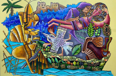 Kıbrıs Modern Sanat Müzesi için Sanatçı Valentina Mukhacheva, Karantina Günlerinde Kıbrıs’ın Tarihi ve Turistik Mekanlarından Girne’de Bulunan Batık Gemi, Gazimağusa’da Bulunan St.Nicolas Katedrali ( Lala Mustafa Paşa Cami) ve Kuzey Kıbrıs Türk Cumhuriyeti’nin Simgesi Haline Gelen Caretta Caretta’yı Tuvale Resmetti