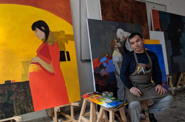Kıbrıs Modern Sanat Müzesi için Sanatçı Almaz Sharshekeev, Kovid 19 ile Mücadeleye Destek için Tuvale Resmetti