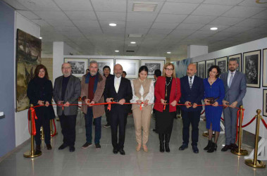 Consisting a total of 86 art pieces exclusively prepared for Cyprus Museum of Modern Arts, four solo exhibitions titled as “Nomadic Rhythm”, “Heritage”, “Stories” and “History and Art of Central Asian Peoples” that reflect respectively the extraordinary art vision of the Kazakh artists Sergey Anarbekov, Baktygerey Teleubay, Ilsuyar Kazakova and Moldir Baigozhanova were opened by Famagusta MP Resmiye Canaltay