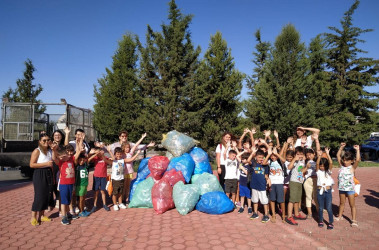 Özay Günsel Children’s University Students recycled water bottles demonstrating environmental consciousness