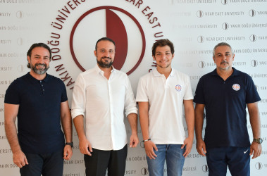 Near East University President of the Board of Trustees Assoc. Prof. Dr. İrfan S. Günsel accepts Champion Swimmer Doğukan Ulaç