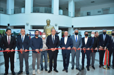 On World Art Day, four solo exhibitions brought together by the Cyprus Museum of Modern Arts consisting of 165 works were opened by President Ersin Tatar in the exhibition hall of the Near East University Hospital