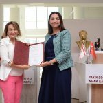 Furthermore, she said that she was proud to be acquainted with a person like Dr. Suat İrfan Günsel as he knows and understands that art is an effective means of transferring cultural development, integration, immortalization of feelings and thoughts of a society to future generations and since he made such great contributions to modern arts in Cyprus. She said: “In this regard, I would like to thank Dr. Suat Günsel and the Near East Family on behalf of myself and my government.”