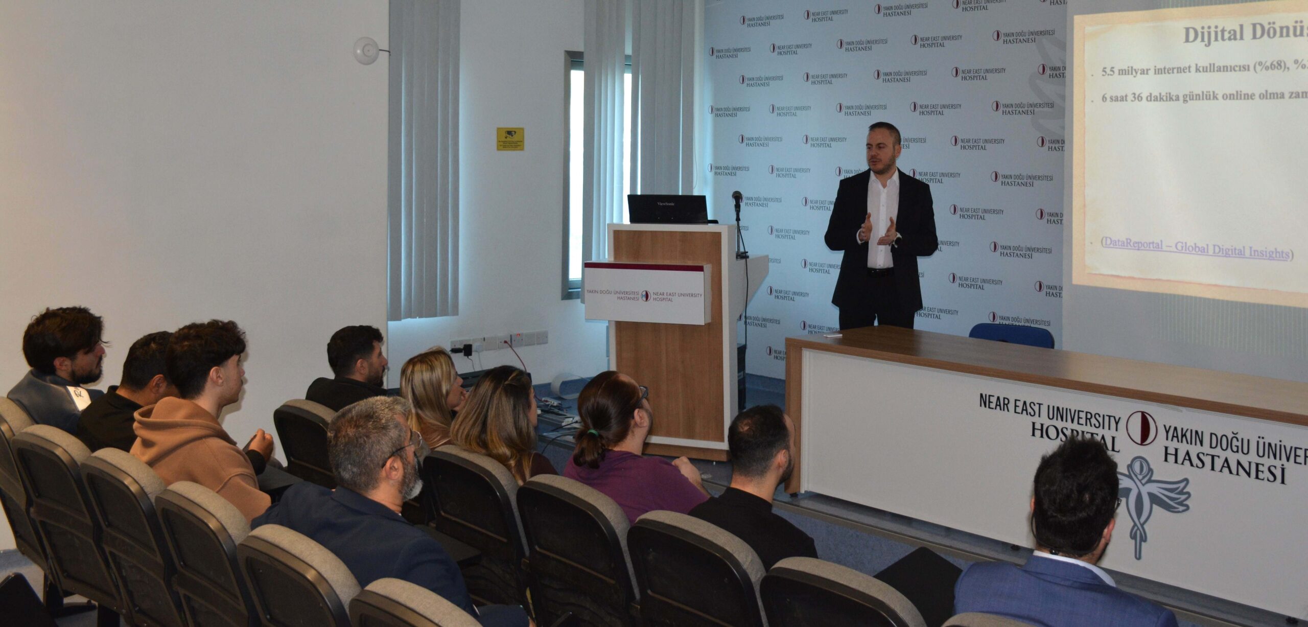 Dünyanın en iyi ilk 500 üniversitesi arasında yer alan Yakın Doğu Üniversitesi, bilimsel birikimi ve akademik çalışmalarıyla ülkedeki kurum ve kuruluşlarda yürüttüğü çalışmalara bir yenisini daha ekledi. Bu kapsamda, Başbakanlık Dijital Dönüşüm ve Elektronik Devlet Kurumu, Yakın Doğu Üniversitesi Dijital Eğitim ve Bilişim Birimi ile Toplumsal Araştırma ve Geliştirme Merkezi iş birliğiyle, Yakın Doğu Üniversitesi Hastanesi’nde gerçekleştirilen konferans, dijital dönüşümün kamu yönetimi üzerindeki etkilerini akademik bir bakış açısıyla ele aldı.