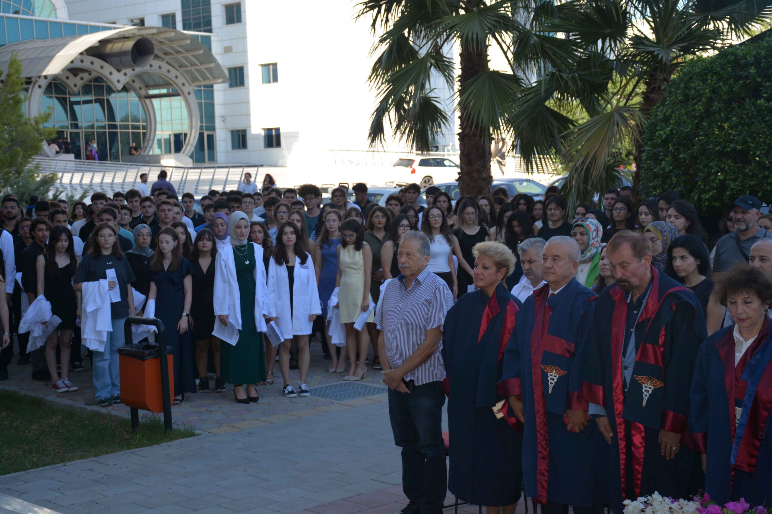 The ceremony began with a moment of silence and the singing of the National Anthem. Opening remarks were delivered by Near East University Vice Rector Prof. Dr. Umut Aksoy and Near East University Faculty of Medicine Dean Prof. Dr. Gamze Mocan. Following the speeches, the first-year students recited the Student Oath, accompanied by Dean Prof. Dr. Gamze Mocan, marking a meaningful and unforgettable start to their careers.