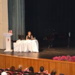 After the speeches, After reciting the Student Oath together withProf. Dr. Gamze Mocan, all first-year students put on their white coats. Following the recitation of the Student Oath, the first lecture on “Monkey Flower” was given by Prof. Dr. Özen Aşut, a faculty member at the Public Health Department of the Near East University Faculty of Medicine.