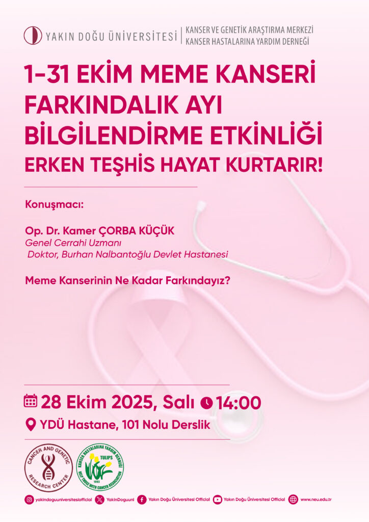Etkinlik Detayları Gün Tarih Konum Hatırlatma 1 28 Ekim 2025 - 14:00 Yakın Doğu Üniversitesi Tıp Fakültesi 2.Kat,217 No'lu Salon