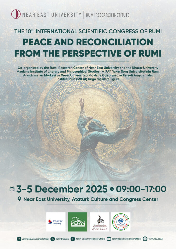 Etkinlik Detayları Gün Tarih Konum Hatırlatma 1 3 Aralık 2025 - 09:00 YDÜ Atatürk ve Kültür Kongre Merkezi 10. ULUSLARARASI RUMÎ KONGRESİ 10. ULUSLARARASI RUMÎ KONGRESİ İLE İLGİLİKONU BAŞLIKLARI VE DETAYLAR