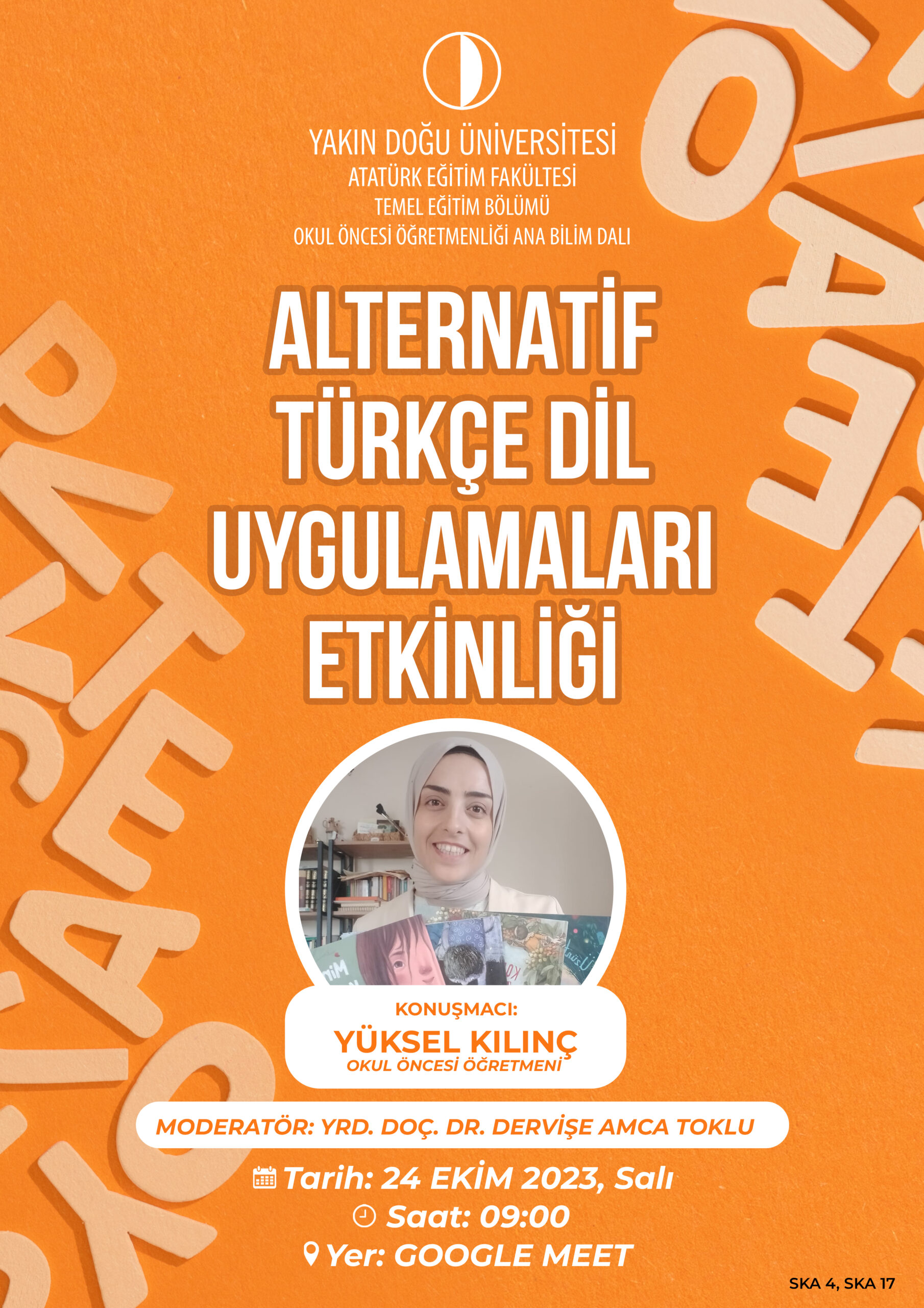 Etkinlik Detayları Gün Tarih Konum Hatırlatma 1 24 Ekim 2023 - 09:00 Yakın Doğu Üniversitesi Link: https://meet.google.com/gru-scao-qqz?authuser=1