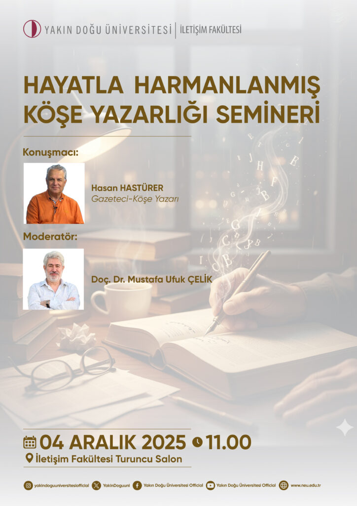 Etkinlik Detayları Gün Tarih Konum Hatırlatma 1 4 Aralık 2025 - 11:00 İletişim Fakültesi Turuncu Salon