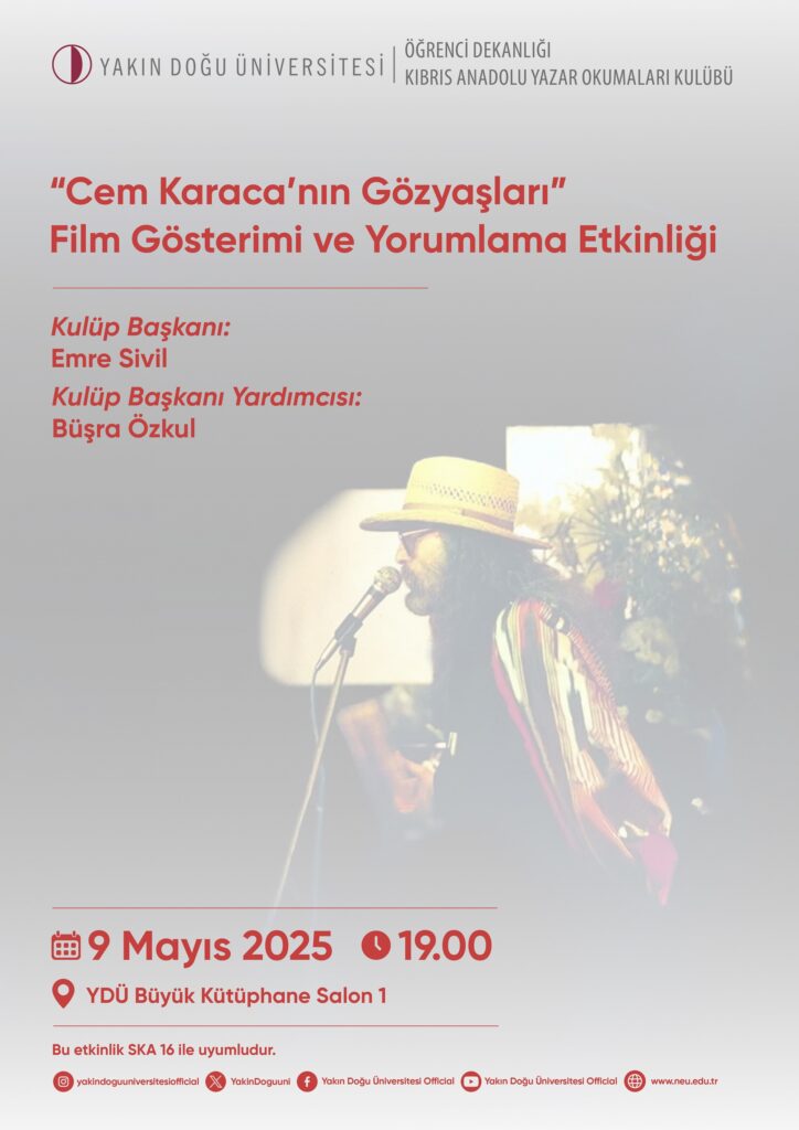Kıbrıs Anadolu Yazar Okumaları Kulübü: “Cem Karaca’nın Gözyaşları” Film Gösterimi ve Yorumlama Etkinliği