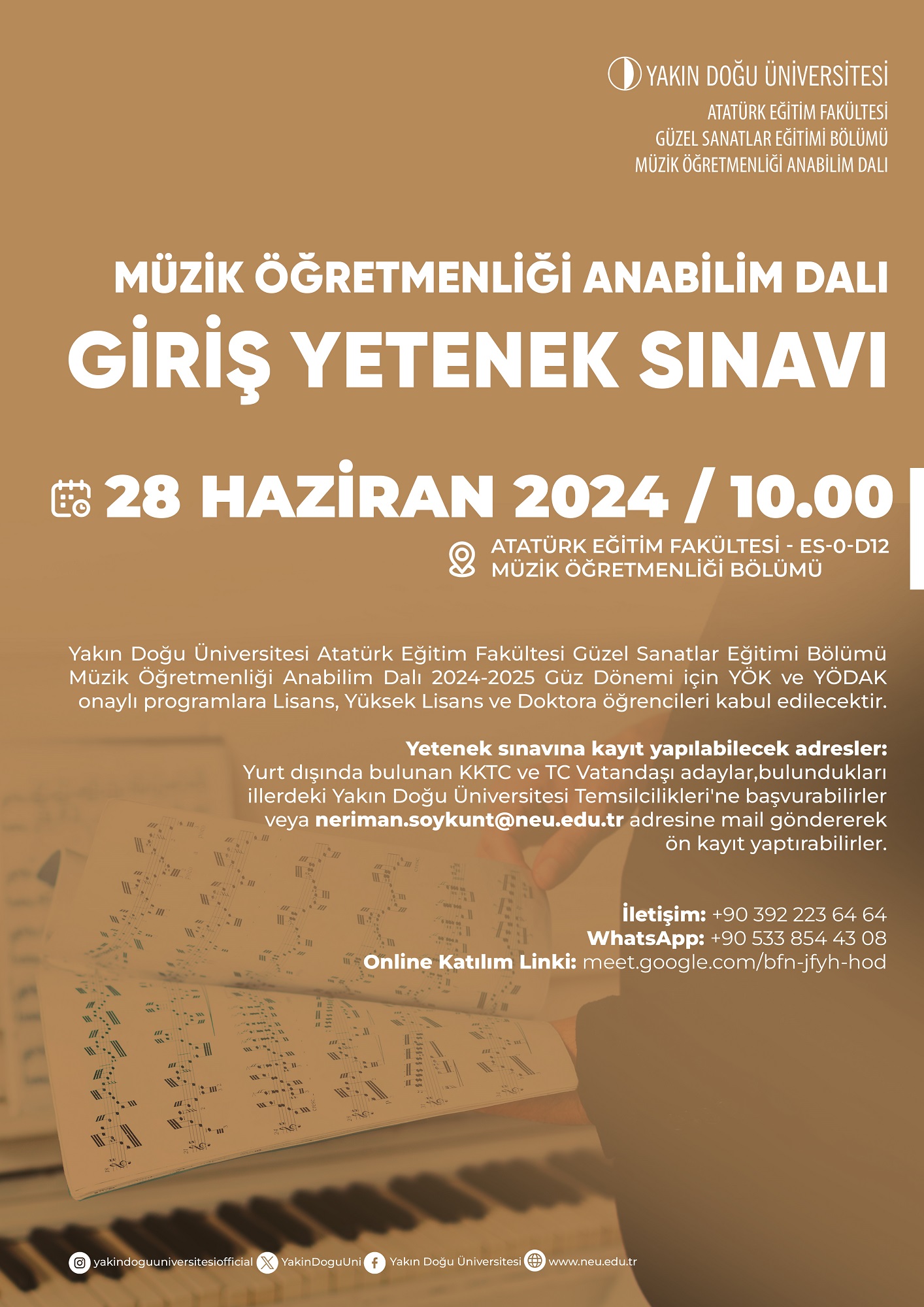 Etkinlik Detayları Gün Tarih Konum Hatırlatma 1 28 Haziran 2024 - 10:00 YDÜ Atatürk ve Kültür Kongre Merkezi Online Katılım Linki: meet.google.com/bfn-jfyh-hod
