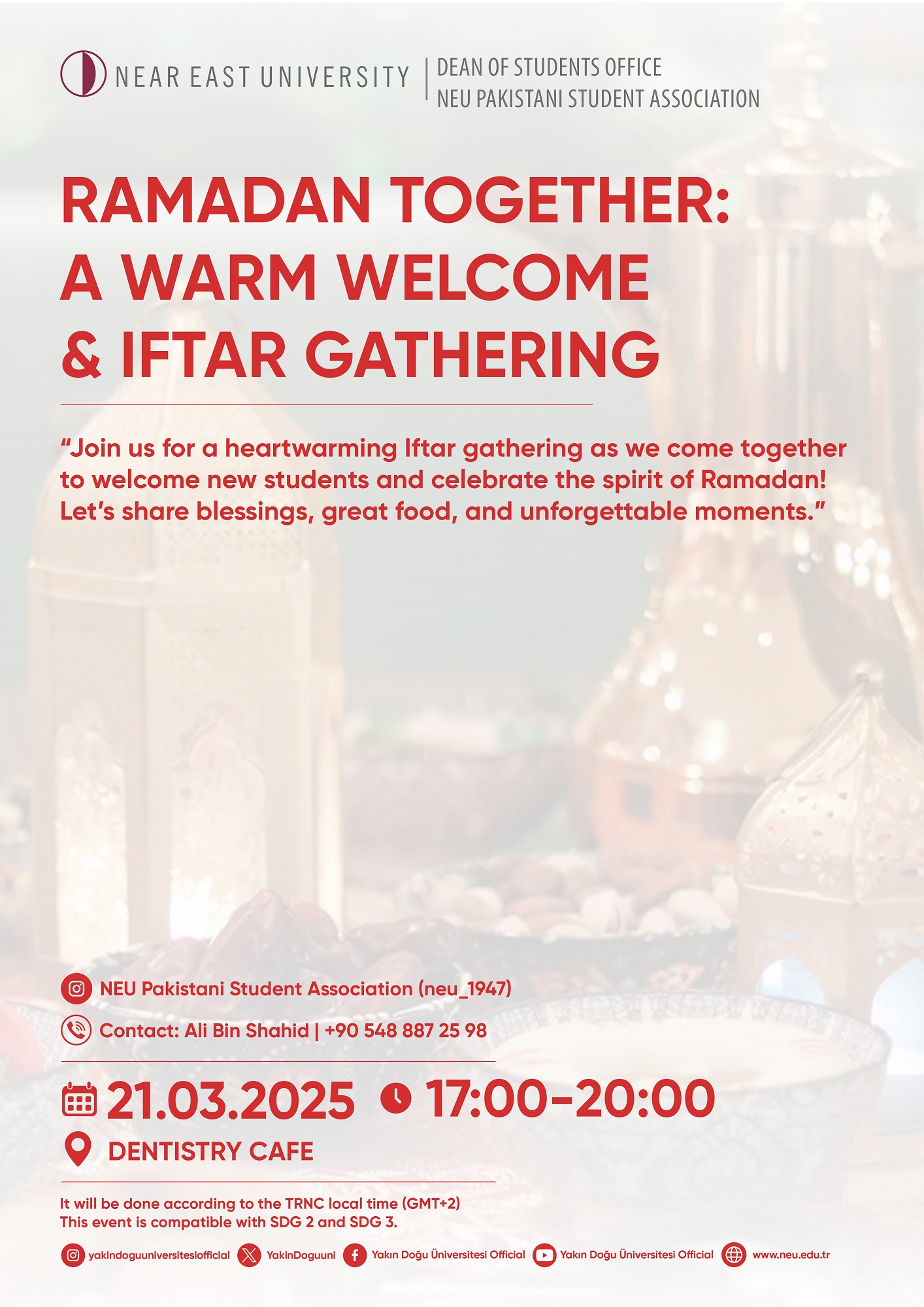 NEU Pakistani Student Association: Ramadan Together: a Warm Welcome & Iftar Gathering
