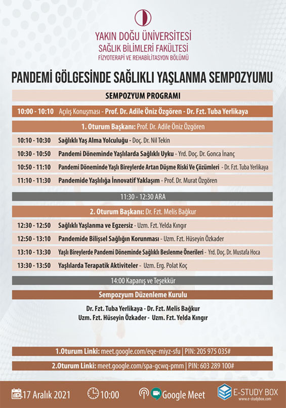 Etkinlik Detayları Gün Tarih Konum Hatırlatma 1 17 Aralık 2021 - 10:00 1. Oturum Linki: meet.google.com/eqe-miyz-sfu | PIN: 205 975 035#2. Oturum Linki: meet.google.com/spa-gcwq-pmm | PIN: 603 289 100#