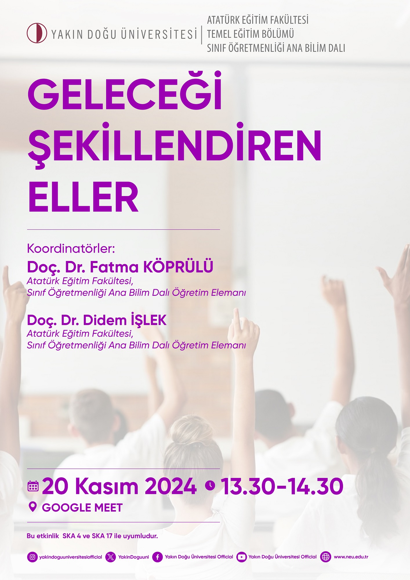 Etkinlik Detayları Gün Tarih Konum Hatırlatma 1 20 Kasım 2024 - 13:30 Link: https://meet.google.com/paf-prhh-wmh