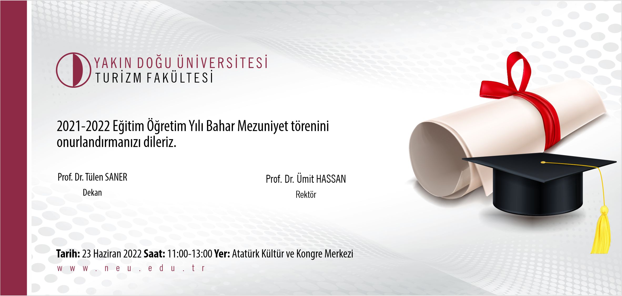 Etkinlik Detayları Gün Tarih Konum Hatırlatma 1 23 Haziran 2022 - 11:00 YDÜ Atatürk ve Kültür Kongre Merkezi