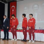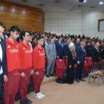 The pride of Turkish archery, Mete Gazoz, Ulaş Berkim Tümer and Muhammet Abdullah Yıldırmış and their coach Yusuf Göktuğ Ergin, who brought them to these great successes, met with the people of Cyprus at Near East University. The “Champions of a Century” talk, which was also attended by Abdullah Topaloğlu, Board Member of the Turkish National Olympic Committee and President of the Turkish Archery Federation, was organized in cooperation with the Near East University Faculty of Sports Sciences, Department of Coach Education and the TRNC Archery Federation.