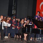 Tören, Gazi Mustafa Kemal Atatürk, Kıbrıs Türklerinin Lideri Dr. Fazıl Küçük, Kurucu Cumhurbaşkanı Rauf R.Denktaş ve tüm şehitler için 1 dakikalık saygı duruşu ve ardından İstiklal Marşı’nın okunmasıyla başladı. Yakın Doğu Üniversitesi Atatürk Eğitim Fakültesi Müzik Öğretmenliği Bölümü’nden Uzm. İlyas Abdullin ve Uzm. Gözdem İlkay‘ın müzik dinletisi salonu dolduranlar tarafından büyük beğeniyle izlendi.