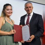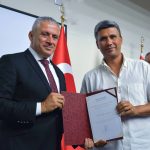 Konuşmaların ardından Ekonomi ve Enerji Bakanı Hasan Taçoy tarafından, Kazakistanlı sanatçılar; Yerlan Aytuarov, Kairbay Zakırov, Duzhan Magzumov, Rashida Magaveyeva, Kazym Amankossov, Askar Akhamanov, Serikjan Iskakbek, Ashim Taskaliyev, Bakytkali Urazov, Tulegen Suleimenov, Akkali Zakirov ve Meruyert Zhumanova’ya sırasıyla teşekkür belgesi takdim edildi. Sanatçılardan Duzhan Magzumov ise tasarımı kendine ait olan Kazakistan’ın enstrümanlarından Dombra ile önce kısa bir müzik dinletisi sundu ardından Kurucu Rektör Dr. Suat Günsel’e dombra’yı takdim etti…