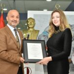 Prof. Dr. Şanlıdağ ; “Bugün Kıbrıs Modern Sanat Müzesi için, Ukraynalı sanatçılar İhor Yurchenko’ya ait ‘Uzay Förmülü’ baskı resim, Solomiia Dorosh’a ait ‘Doğudan rüzgar’ baskı resim, Kateryna Ocheredko’ya ait ‘ Benim sembolüm’ baskı resim, Tetiana Ocheredko’ya ait ‘Benim hayatım’ resim ve Mykhailo Drimailo’ya ait ‘Ufuk’isimli baskı resim sergisi ile toplam 173 eser, Kazakistanlı sanatçı Georgiy Makarov’a ait ‘Uyku-Görme Labirentleri’ isimli 20 eser ve 35 özel teknikle yapılan çalışma, Tacikistanlı sanatçı Pairav Gulov’a ait 20 eser ile toplamda 248 eserden oluşan 7 sergi açılışında birlikteyiz. Sanatçılarımız ülkelerinde ve tüm dünyada tanınan ve ödül almış sanatçılardır. Bugün de Üniversitemiz tarafından Pairav Gulov’a Dodurbek Ödülü, diğer sanatçılarımıza da Gümüş Anahtar ödülü verilecektir. Tüm sanatçılarımıza Kıbrıs Modern Sanat Müzesi’ne katkıları nedeniyle teşekkür eder, aldıkları ödül dolayısıyla kendilerini kutlar, siz sanatseverlere iyi seyirler dilerim.” İfadelerini kullandı.
