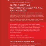 KKTC’nin 40’ıncı kuruluş yıldönümü onuruna düzenlenen “Güzel Sanatlar Kasım Sergisi”, 22 Kasım Çarşamba günü Milli Eğitim Bakanı Nazım Çavuşoğlu’nun katılımı ile Yakın Doğu Üniversitesi Atatürk Kültür ve Kongre Merkezi Sergi Salonu’nda açılacak.