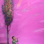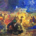 Roza Dzhangaracheva's works are characterized through abstraction and Bahramjon Temirov's works are characterized through an ethnic art style. Bazarkul Omarkul, emphasizing the comfort and warmth of Kyrgyz life style elements through ethnographic motifs in his works, will depict these elements with nomadic tents, crib, lamp, and houses. On the other hand, Zhyrgalbay Maturaimov will reflect the life, traditions and his love and dedication to traditions of the Kyrgyz nation and his love for his homeland, while Jumabek Bazarbayev will depict the landscapes that give him strength and inspiration for new works.