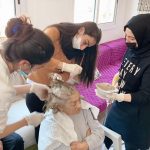Near East University Vocational School Hair Care and Beauty Services Department lecturers and students attended the event, where hair and beauty applications were carried out for women in Nicosia Altın Kalpler nursing home.